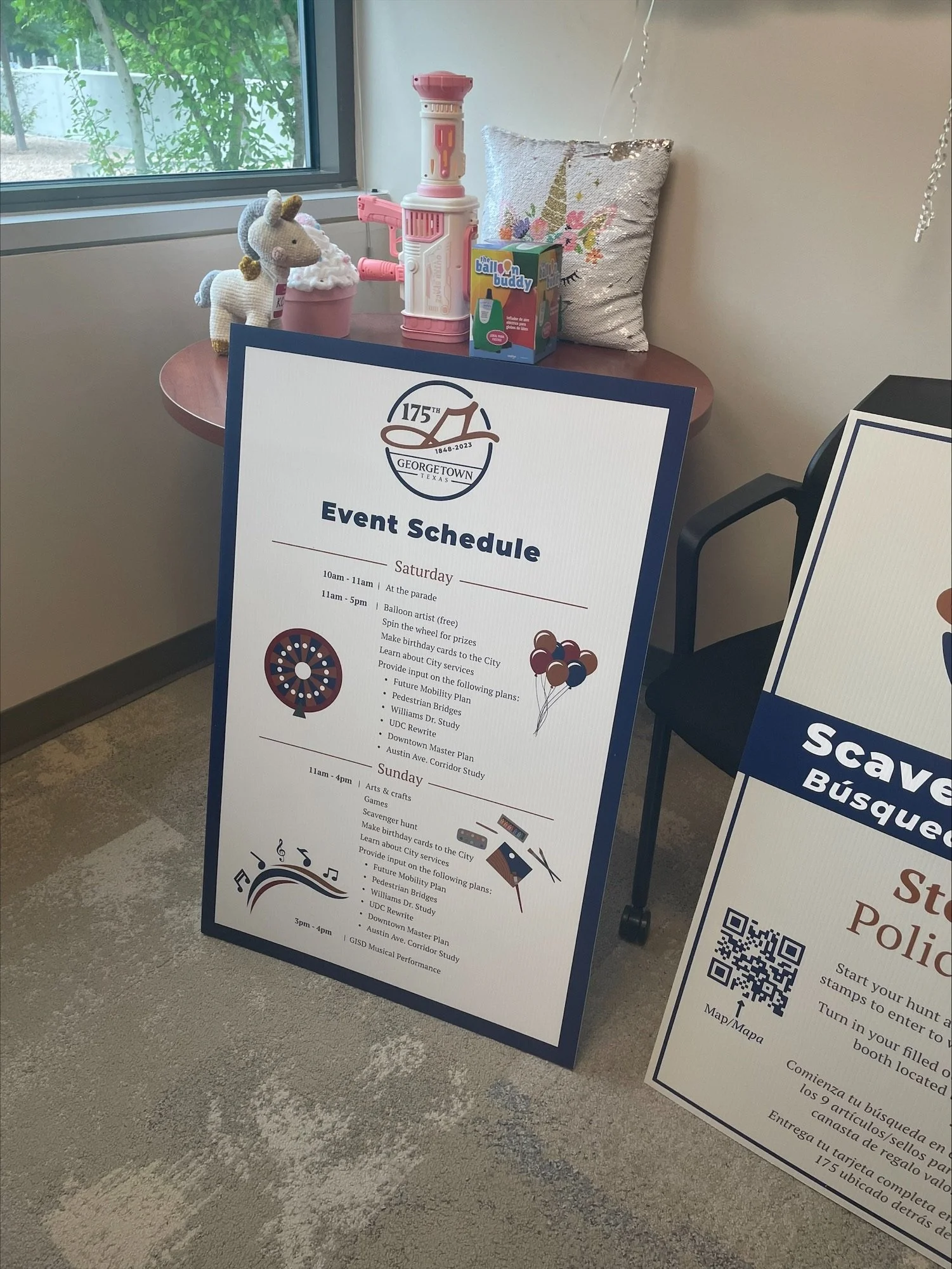 Final design deliverables included all logo files, brand guidelines, and LOTS of swag: dog bandanas, bunting, signage, banners, party/birthday hats, cups, stickers, flashlights, t-shirts, keychains, and more! We also assisted Georgetown with ideas and plans for: cards and banners for the community to write their “Happy Birthday, Georgetown” notes; budgeted swag items by type, quantity, and vendor; and general engagement and product inspiration.